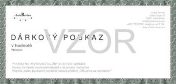 Voucher vystavíme v hodnotě, která Vám bude vyhovovat. Uplatnit jej můžete v restauraci (bohužel ne na alkohol kvůli jiné sazbě DPH), při ubytování nebo i na koupel v horkém sudu. Poukazy jsou k dostání v restauraci nebo k zaslání poštou. Doporučujeme všem si ubytování včas dopředu zarezervovat tady Platnost poukazu je neomezená, ale ceny služeb se mohou měnit...