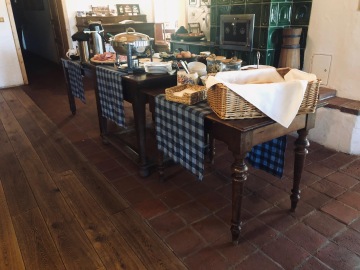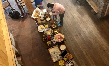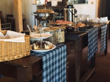 Denně čerstvé rohlíky, chléb, oblíbená vajíčka, domácí pomazánky, šunka, sýry, koláč. Zdravější verze je zase bílý jogurt, vločky, ovoce, místní marmelády a med. Snídaně se podává od 8:00-10:00.